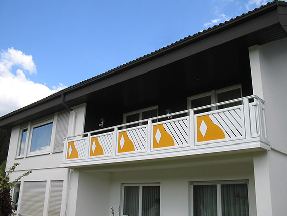 Lichtes Balkonmodell, die Dekorelemente setzen farbige Akzente